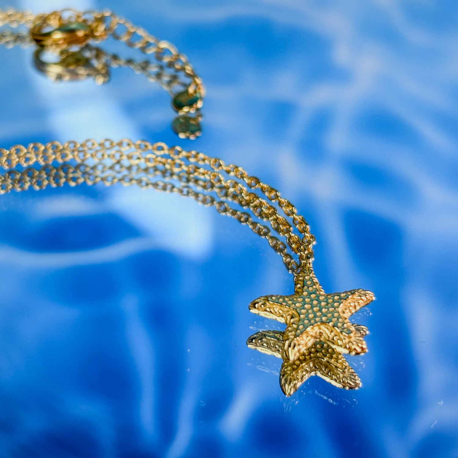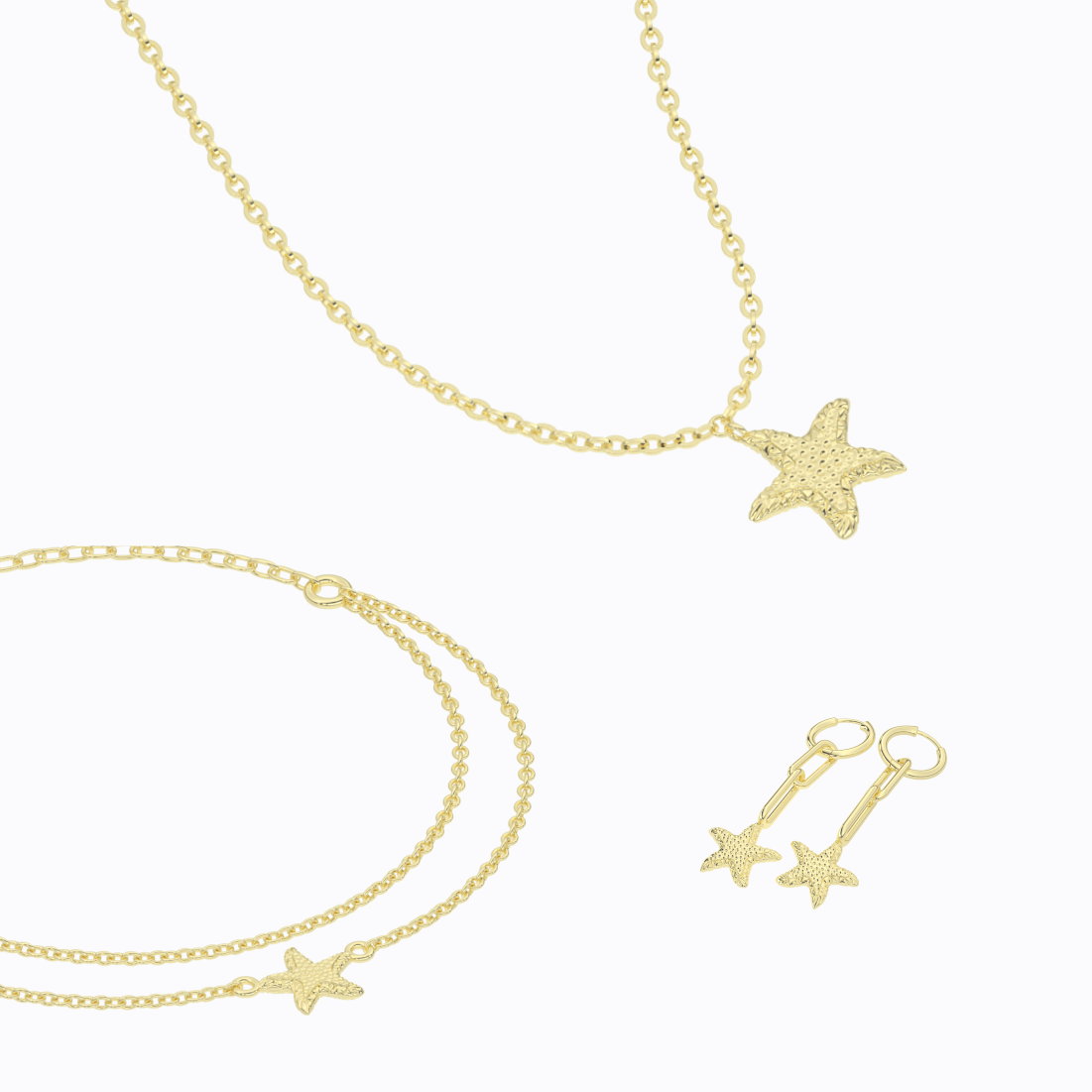 Wij hebben er niet voor gekozen om bij een groothandel in te kopen, maar om onze sieraden zelf te ontwerpen. Met aandacht hebben we elk fijne lijntje van de zeester tot in detail nagemaakt.